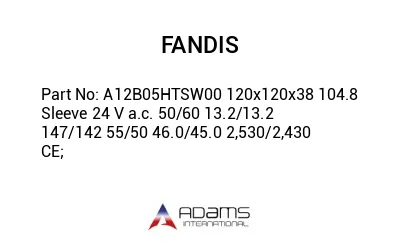 Description: FANDIS - A12B05HTSW00 120X120X38 104.8 SLEEVE 24 V A.C. 50/60 13.2/13.2 147/142 55/50 46.0/45.0 2,530/2,430 CE;